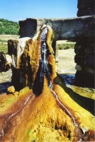 Die Quellen sprudeln schon seit der Antike mit schwefelhaltigem 75 Grad heißen Wasser. In dem sehr einfachen Hotel kann man sich ein Zimmer mit Quellanschluß mieten. Soll sehr gesund sein, aber man muß auch den Geruch mögen ....