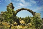 An der Küstenstraße von Geyikli nach Assos kommt man vorbei an Alexandria Troas, einer Stadt, die von Antigonos ca 310 v.Chr. gegründet wurde. Die für die damalige Zeit sehr große Stadt von 390 ha und einer 8 km langen Stadtmauer ist bisher nur zum Teil archäologisch erkundet. Die Straße führt mitten durch die antike Stadt und Schafe grasen in den Ruinen. Sichtbar ist der Rest einer Torbefestigung und die Herodes Atticus Therme. Die Ausgrabungen eines Tempels kann man vom Straßenrand aus beobachten. Ich bin schon öfter durch die Ruinen gelaufen und habe mir vorgestellt, wie die Menschen damals hier gelebt haben. Allerdings: feste Schuhe sind angesagt - nicht nur wegen des unwegsamen Geländes, sondern auch wegen der Schlangen, sollen zwar ungiftig sein, aber lustig ist es nicht, wenn plötzlich etwas endlos langes, dünnes, grünes den Weg kreuzt....
