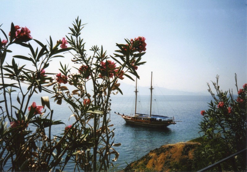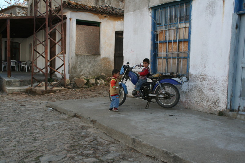 Die Insel liegt westlich der Halbinsel Gallipoli und ist schon seit der Antike besiedelt. Man fährt durch Pinienwälder und Olivenhaine mit wunderschönen, sehr alten Olivenbäumen zu einsamen Sandständen. Es gibt mehrere kleine Dörfer, die zum Teil verlassen aussehen, einige Häuser verfallen, einige sind wunderschön restauriert. Durch Gespräche mit Einwohnern haben wir erfahren, daß viele der Häuser Griechen gehören, die die Insel verlassen mußten oder später freiwillig verlassen haben, da ihre Schulen behördlich geschlossen wurden. Aber im Sommer kommen einige zurück, setzen die Häuser istand und verleben die Sommermonate hier. In einer verlassenen Schule wurde ein Hotel eröffnet, in dem wir übernachtet haben und in der benachbarten Kirche war am Sonntagmorgen Gottesdienst.
