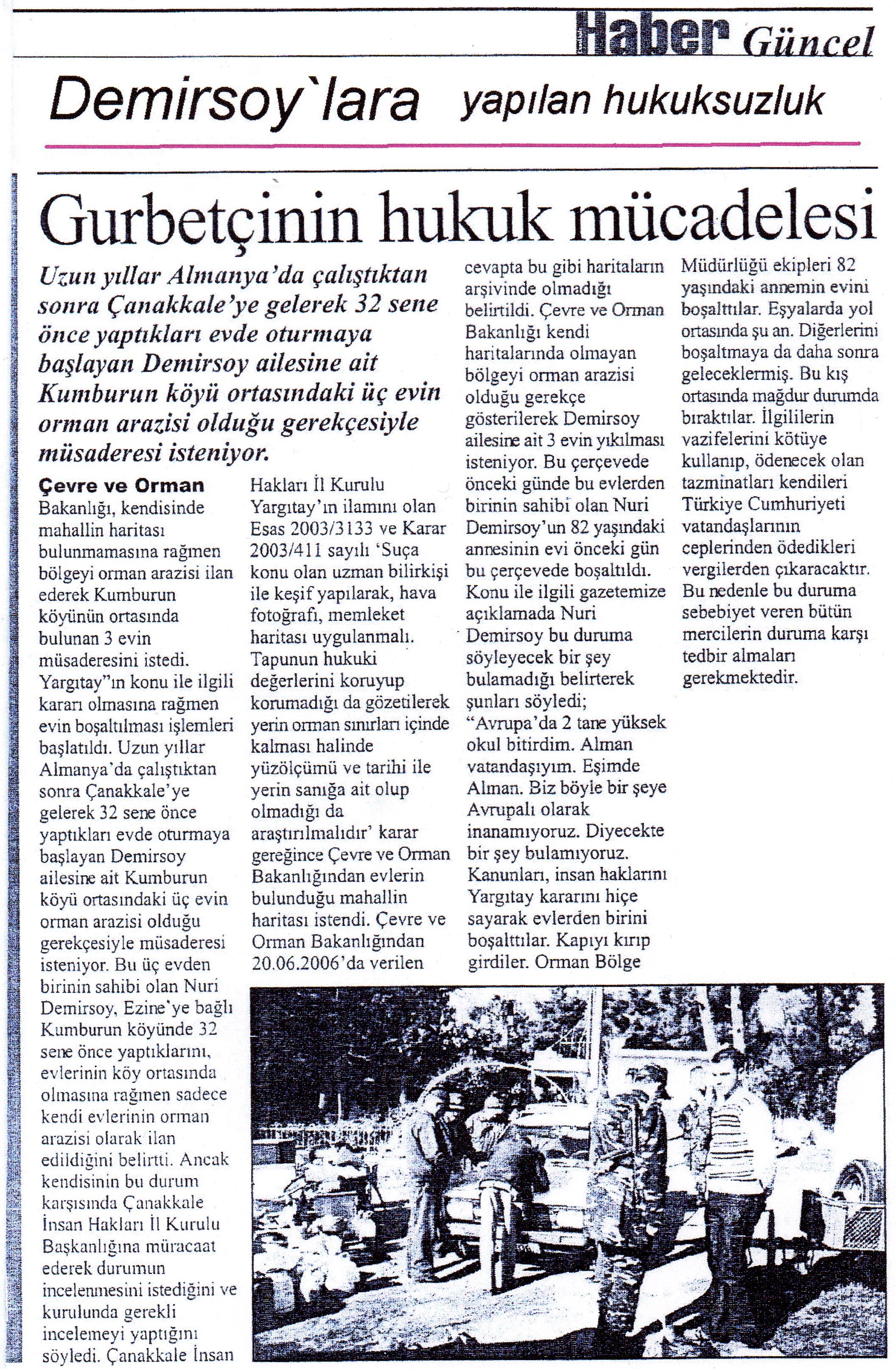 Nach 32 Jahren glücklichem Wohnen in einer Siedlung mit 37 Häusern, wurden die "Demirsoy Häuser" (Vater, Bruder, wir) trotz gesetzlichem Wohnsitz in Kumburun, Tapu und Baugenehmigung von der Waldbehörde zu Wald erklärt, dh okkupiert. Die Häuser in der Mitte der Siedlung - siehe Lageplan - sind versiegelt, wir leben in Europa.