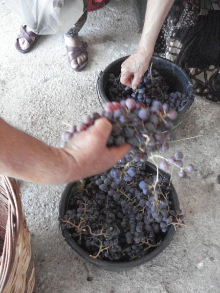 Weinberg mit ca 2400 Weinstöcken - viel Arbeit! Die Ernte findet normalerweise im September statt, dann werden die Trauben gewaschen, von den Stielen befreit, gepresst und dann dürfen sie gären